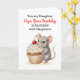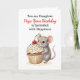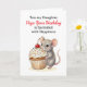 An adorable birthday card for a daughter featuring an illustration of a cute little mouse carrying a vanilla cupcake with sprinkles and a cherry on top! All text on this card can be edited in the personalize area.