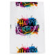 Haz que tus regalos sean inolvidables con nuestro Diseño para Bolsa de Regalo de Feliz Cumpleaños. Este diseño vibrante y artístico presenta la frase “Happy Birthday” en una tipografía audaz con un impresionante degradado de rosa a amarillo, combinada con salpicaduras de pintura coloridas que crean un aspecto alegre y festivo. Perfecto para cumpleaños de todas las edades, este diseño es ideal para crear bolsas de regalo personalizadas que destaquen en cualquier celebración.
