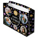 Make your gifts even more special with a custom photo gift bag. This stylish design features a simple pattern of circles and stars, with "Happy Birthday" in a trendy font. You can personalize the template with the recipient's name, age and five of your favorite photos of family, friends and pets! Perfect for milestone birthdays including 18th, 21st, 30th, 40th, 50th and 60th. This allover patterned gift bag comes with your choice of a matte or glossy finish. Printed colors: purple, gold, black and white, or customize the colors with the design tool.