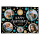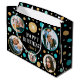 Make your gifts even more special with a custom photo gift bag. This stylish design features a simple pattern of circles and stars, with "Happy Birthday" in a trendy font. You can personalize the template with the recipient's name, age and five of your favorite photos of family, friends and pets! Perfect for milestone birthdays including 18th, 21st, 30th, 40th, 50th and 60th. This allover patterned gift bag comes with your choice of a matte or glossy finish. Printed colors: blue-green teal, gold, black and white, or customize the colors with the design tool.