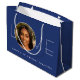 Send love and best wishes on their birthday with a custom photo gift bag! This chic design features a favorite photo integrated into the word "LOVE", complemented by trendy, modern typography and a minimalist aesthetic. You can easily personalize the template with the recipient's name and age, making it ideal for milestone birthdays including 18th, 21st, 30th, 40th, 50th and 60th. This elegant design is also perfect for Valentine's Day, a bridal shower, bachelorette party, holidays, or a special occasion. It adds a unique and thoughtful touch to your gift wrap, and is a lovely choice for a daughter, girlfriend, wife or best friend. Available in either a matte or glossy finish. Printing colors: dark blue, navy and white, or customize the background color with the design tool. Explore the online collection for matching printed designs!