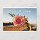 Happy Birthday, May your day be as beautiful as you are. Rose auf Geländer mit Himmel im Hintergrund.