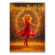 Happy Birthday with young dancing girl and glitter OBS Kort