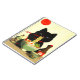Pure, simple joy in a bowl. This delightful and charming artwork captures a very happy black cat blissfully slurping up a delicious bowl of ramen. Rendered in a beautiful, minimalist style inspired by traditional Japanese Ukiyo-e woodblock prints, this piece is a celebration of life's simple pleasures: good food and happy cats. The simple red sun in the background evokes the Japanese flag, completing the classic aesthetic.