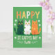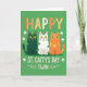 This design shows three stylized cats lined up front and center on a rich green background, like close friends posing together for St. Patrick’s Day 💚. One cat is deep emerald with orange polka dots, the middle cat is white with bright green polka dots, and the third is orange with sunny yellow polka dots, creating a cozy, friendly rhythm across the row. Their wide golden eyes and tiny whiskers give them an affectionate, slightly bashful look, as if they’re sharing a private joke with each other. Above their heads, “HAPPY” sits near the top in large segmented letters colored orange and white, standing out clearly against the green. Below the cats, “ST. CATTY’S DAY TWIN” appears in a rounded, easy-to-read style, set in white so it pops from the background. Small white shamrocks and curled decorative lines flank the lower text, tying in the holiday theme with a light touch ☘️. The green, white, and orange palette nods to the Irish flag while keeping the scene simple and focused. Each cat has black pupils centered in those golden eyes, with the polka dots scattered evenly across their bodies against the smooth green field.