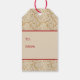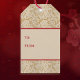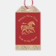 These festive gift tags commemorate the Chinese Lunar New Year of 2026, which is the zodiac Year of the Horse. Celebrate the prosperity and good fortune with these elegant tags that feature text and a scrollwork horse and clouds in gold on a red background. The text can be edited. It says "Happy New Year" at the top and "Year of the Horse" at the bottom. The edges feature an exquisite gold, faux pearl, and cream damask pattern. On the back, you can fill out the recipient or gift giver, or print as is and fill out with a pen.