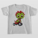 A grumpy dino riding an absurdly small tricycle in full cartoon glory. Perfect for funny stickers, t-shirts, or kids merch.