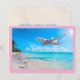 Happy Easter Airplane Over Beach with Flamingos Julkort