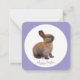 Süßes Kaninchenjungtier schaut erwartungsvoll auf weißem Untergrund.