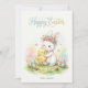 Send the sweetest Easter wishes with this adorable bunny and chick hugging scene! A fluffy white bunny wearing a beautiful flower crown gently hugs a tiny yellow chick with a cute pink bow tie. Colorful decorated Easter eggs, two sweet snails, floating hearts, and a soft rainbow watercolor background create a magical spring meadow. Beautiful watercolor style, blank inside with editable message. Perfect for Easter, spring, or any animal lover!