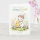 Send the sweetest Easter wishes with this adorable bunny and chick hugging scene! A fluffy white bunny wearing a beautiful flower crown gently hugs a tiny yellow chick with a cute pink bow tie. Colorful decorated Easter eggs, two sweet snails, floating hearts, and a soft rainbow watercolor background create a magical spring meadow. Beautiful watercolor style, blank inside with editable message. Perfect for Easter, spring, or any animal lover!