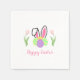 Celebrate your Easter with these Happy Easter Bunny Ears and Eggs Party napkins. The design features bunny ears rising above four colourful easter eggs followed by two pink tulips flowers at each side. These napkins makes a perfect choice for any Easter occasion. Feel free to personalize to your choice.