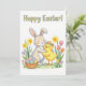 Happy Easter Greeting Card – Cute Bunny and Chick Julkort