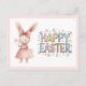 Happy Easter Pink Bunny Postcard Helg Vykort