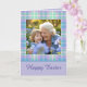 Happy Easter Plaid One Photo Purple Blue Pastel Kort