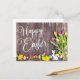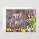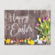 Happy Easter Greeting Card designed with passion for easter holidays. Flowers and colorful eggs with handwritten Letters. Send it to friends and family for eater greetings wishing them great holidays.