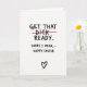 This greeting card features a stark white background with thick black lettering arranged like a quick note between close friends, setting a teasing, flirty tone. The top line reads “GET THAT DICK READY,” and the word “DICK” is crossed out with a single red, hand-drawn strike that feels like a sudden, embarrassed correction. Just beneath, “SORRY I MEAN,...” appears in the same black lettering, spaced like a pause before the joke lands. The final line, “HAPPY EASTER,” sits lower and larger, still in black, giving the message a sweet turn after the cheeky start 🌷. The simple layout leaves lots of open space, making the black text and that one red line stand out sharply. A tiny black heart near the bottom adds a soft, affectionate touch, like a wink after a daring remark 🐰. The only color accents are the red strike through the crossed-out word and the small black heart at the bottom.