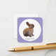 Süßes Kaninchenjungtier schaut erwartungsvoll auf weißem Untergrund.
