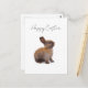 Süßes Kaninchenjungtier schaut erwartungsvoll auf weißem Untergrund.
