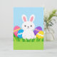 Happy Easter White Bunny Easter Eggs Blue Sky Julkort