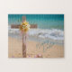 Send warm Easter greetings with this tropical-themed holiday jigsaw puzzle. The design features a wooden cross with yellow Easter lilies, delicate pink ribbon, and scattered flower petals in the sand with the turquoise ocean in the background. The beautiful script text reads "Happy Easter." The puzzle is a great gift option for family, friends, neighbors, teachers, co-workers, the elderly, caregivers, and the perfect addition to any Easter basket! Please browse our complete collection of tropical-themed Easter cards, gifts, and home decor. Special design requests accepted.