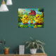 Happy Easter Yellow Chicks in a Pond by a Red Barn Poster