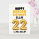 Celebrate turning 22 on the 22nd, with this Happy Golden Birthday card! Designed in a bright and cheerful gold theme, this card features a fun, bold layout with confetti details and a large gold balloon number. Personalize it with a name on the front and the inside of the card to make their golden birthday extra special!