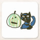 Happy Green Jack o Lantern Black Cat Underlägg Papper Kvadrat
