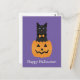 En rutt illustration av en svart katt med en bukslips som kommer ut ur en jack eller ett bågmönster.