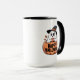 Happy halloween Caffeine Ghost Mugg. Ett spöke i en pumpa, en häxhatt tippade, en sippkaffe som det är Oktoberbränsle. Boo? Nej, det är ett gungel, som viftar en pumpspjutad hej: Happy halloween, era spookybönor!