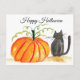 Happy halloween Cute Black Cat Orange Pumpkin Vykort