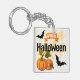 Utformning av happy halloween med fladdermus och pumpor. Den här designen ser ut att vara effektiv i den här nyckelkedjan