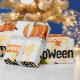 Utformning av happy halloween med fladdermus och pumpor. Den här designen ser ut att vara verkligen på dessa figursättningsPappra