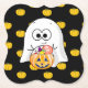Happy halloween Ghost med godis bucket och pumpor black and orange disposable Halloween underlägg for Halloween fest.