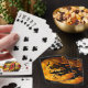 Den här designen har ett happy halloween hälsning med en bild av fullt måne upplyst i en skugga av ljus orange. Man kan också se ett hemsökt hus och fladdermöss flyga i luft. Bredvid texten finns två små bilder: en av en katt och en annan av en pumpa, som båda är kopplade till Halloween.