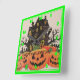 Ett gammalt hus med träd, pumpor och staket som är så ljust och färglöst att det finns på en SQUARE Clock.