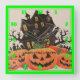 Ett gammalt hus med träd, pumpor och staket som är så ljust och färglöst att det finns på en SQUARE WALL CLOCK.