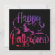hälsning med övertoning av happy halloween med rödhäxa och katt