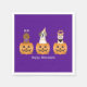 Illustration av tre hundar i pumpor klädda i Halloween-attire.