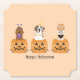 Illustration av tre hundar i pumpor klädda i Halloween-attire.