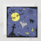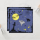 illustration av happy halloween med olika Halloween-symboler på blå bakgrund i grym svart ram