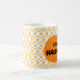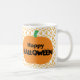 En festiv Happy halloween-pumpa sitter i en anpassningsbar som är digitalt designad mönster av direktuppspelade abstraktens pinhjulformer.