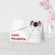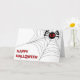 Happy halloween Card med svart spindel och stor röd eld ögon på ett spindelnät. Glöm inte att du kan anpassa kortet hur du vill!