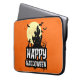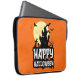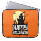 Happy halloween-textillustration med hemsökt hus, kyrkogård och fladdermöss dekoration i fullt måne på grym orange bakgrund