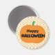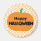 En festiv Happy halloween-pumpa sitter i en anpassningsbar som är digitalt designad mönster av direktuppspelade abstraktens pinhjulformer.