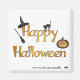 Happy halloween! Roligt, dekorativ skrivning med en häxhatt, en häxbroom, en svart katt och en jack-o-lantern-pumpkin.