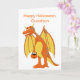 Kortet för en sonson har allt du behöver för Halloween. På framsidan är min teckning av en vänskaplig drake som har sin bus eller godis-pumpa i handen. Redo att samla lite godis från grannarna. Inuti finns en jack-o-lantern och en spetsig hatt och bom med ord BOO i lila. Du kan ändra hela texten så att kortet blir lämpligt för alla som vill ha ett Happy halloween.