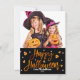 Happy halloween Orange Foil Modern Script Photo Kort