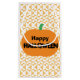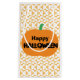 En festiv Happy halloween-pumpa sitter i en anpassningsbar som är digitalt designad mönster av direktuppspelade abstraktens pinhjulformer.
