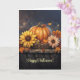 Det brinnande färg från hösten är ett charmerande Happy halloween-kort. En basket som flödar över med fallets innersta väsen, med en pumpa och vackra blommor, medan löv dansar i vinden på en skarp natt.